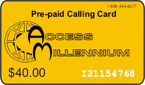 Use the Access Millennium Pre-paid Domestic & International calling card to call the US and more than 230 other countries from anywhere in the world. When you’re in another country, simply dial the toll-free access number and you’ll be voice prompted to connect you back to the US or to other international calling destinations. There’s no need to contact an overseas operator. Check the rates list for latest International Calling Rates.
